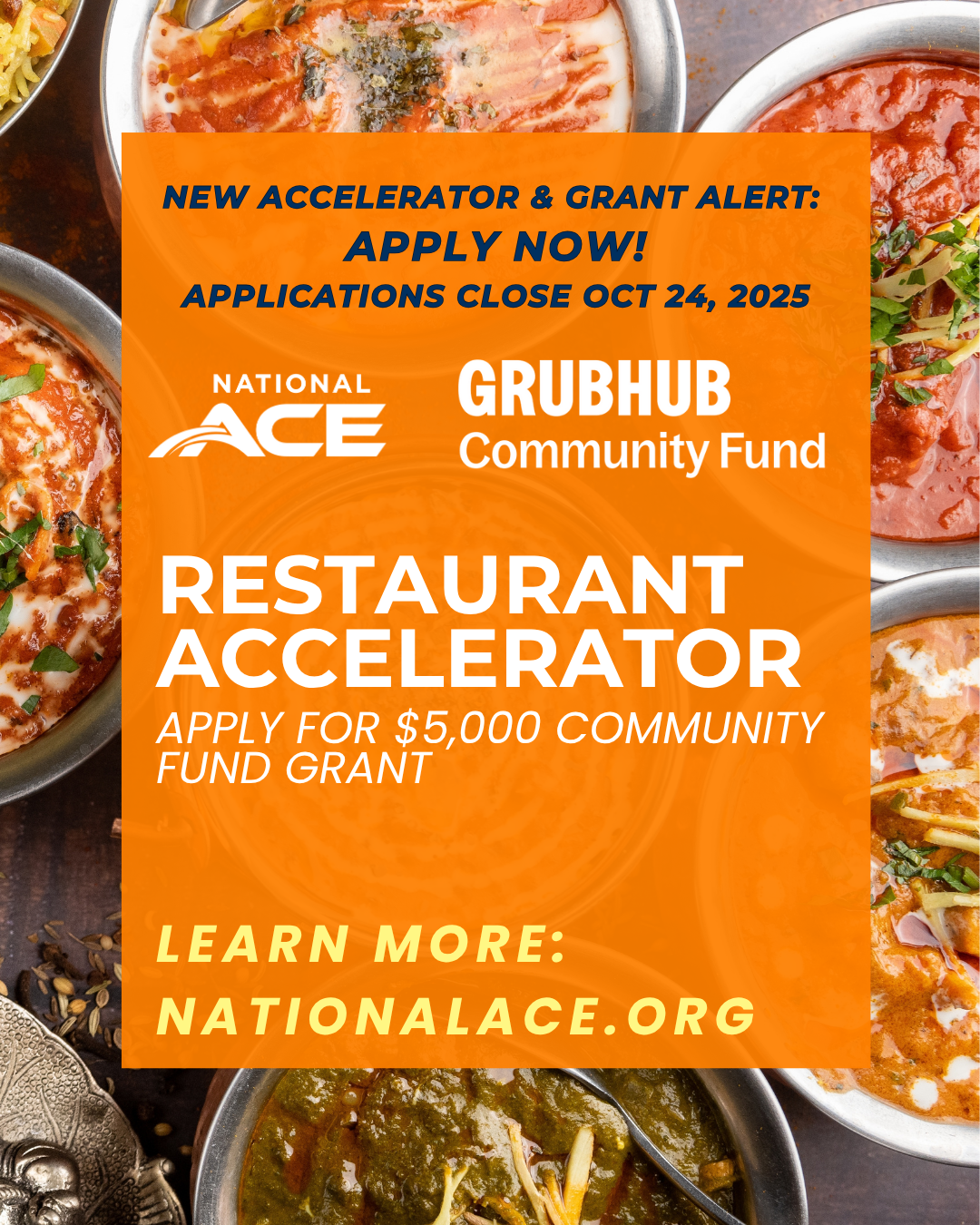 National ACE, in partnership with Grubhub, is proud to announce the opening of applications for the 2025 Restaurant Accelerator and Community Fund Grant, a program made possible by grant support from the Grubhub Community Fund.